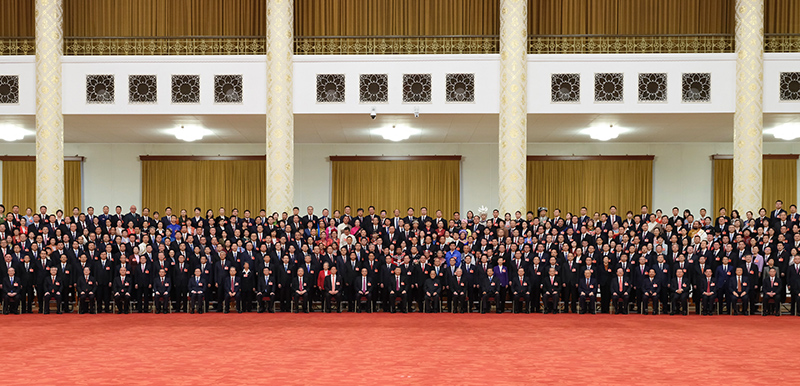 10月23日下午,中共中央总书记、国家主席、中央军委主席习近平等领导同志在北京人民大会堂亲切会见出席党的二十大代表、特邀代表和列席人员,并同大家合影留念。新华社记者 丁林 摄
