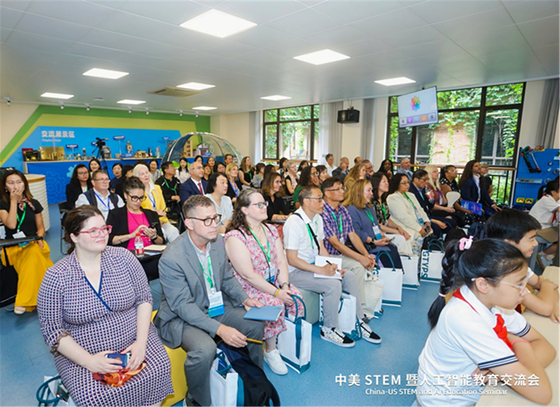 会上,中美双方代表分别围绕STEM教育和人工智能教育,分享了各自领域的实践经验,开展了创新人才培养的深入研讨。美国代表们还观摩了杭州绿城育华学校小学部STEM课程“松鼠的家”,兼具科学性与趣味性的课程、学生们的奇思妙想和创造性思维令代表团成员印象深刻。